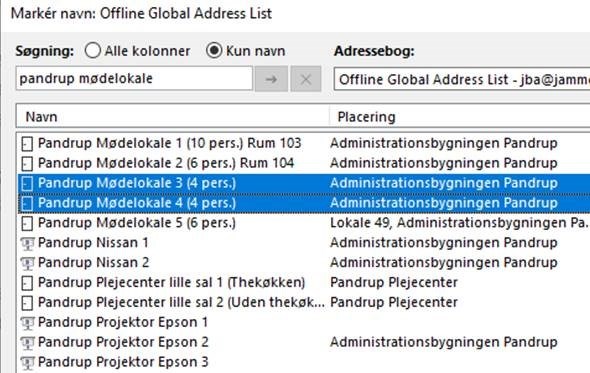 Vi har nu fået 2 rejsekort, der kan bruges til tjenesterejser. Ønsker man at låne et rejsekort sker det på samme måde, som når man booker en af bilerne, en låne-pc eller en projektor i Outlook: søg efter ”Pandrup rejsekort” (se billedet nedenfor) og book et af kortene i den periode, hvor du skal bruge kortet (man kan godt rejse flere på samme rejsekort). Begge kort ligger i samme skab som låne-pc’ere mv. Efter brug lægges kortet tilbage i skabet.